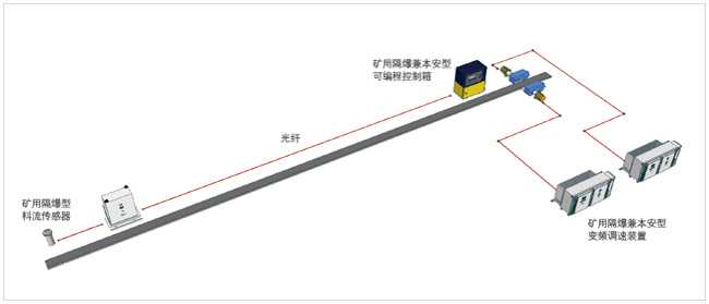 本變載荷帶式輸送機節能調速系統采用先進的料流檢測傳感器檢測膠帶機上煤量變化情況,通過控制與變頻器形成閉環控制,帶式輸送機在輸送量發生變化時,實時適度的調節和控制變頻器的輸出頻率,使帶式輸送機按照與其輸送量相匹配的速度運行,不僅充分利用了帶式輸送機的運載能力,而且減少了驅動電動機不必要的功率損耗,達到節能降效的效果。