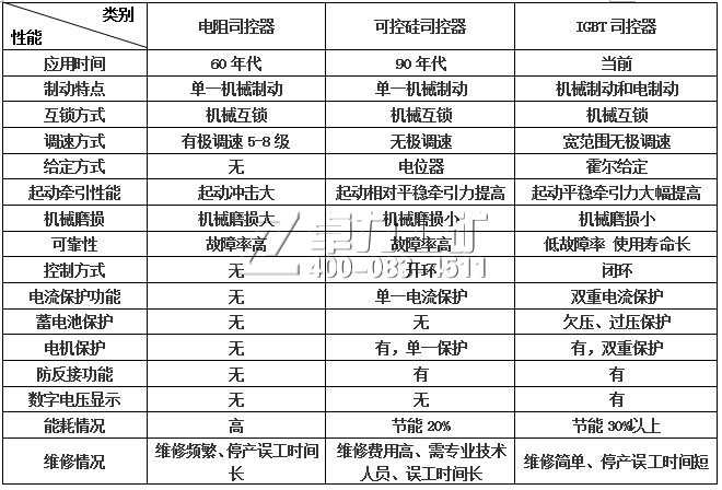 電阻調速司控器與IGBT司控器特性比較表