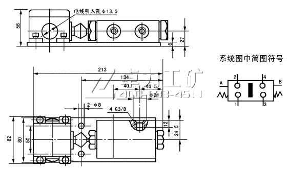 壓差開關(guān)的閥體和行程開關(guān)組裝在一塊底板上。潤滑脂在壓力的作用下從主管道B進(jìn)入壓差開關(guān)閥體活塞的右腔,主管道A卸荷。一旦兩條主管道的壓差達(dá)到5MPa時(shí),活塞克服左腔內(nèi)彈簧力向左移動(dòng),并推動(dòng)行程開關(guān),使觸點(diǎn)1和2閉合,發(fā)出脈沖訊號至系統(tǒng)電控箱,責(zé)令換向閥換向,這時(shí)主管道A受壓,B卸荷,活塞在二端腔內(nèi)彈簧的作用下對中,行程開關(guān)觸點(diǎn)1和2斷開,觸橋處中位。系統(tǒng)開始第二周期工作,一旦主管道A和B間壓差又達(dá)到5MPa時(shí),活塞向右移動(dòng),行程開關(guān)觸點(diǎn)3和4閉合,脈沖訊號再次使系統(tǒng)中的換向閥換向,開始下次循環(huán)工作