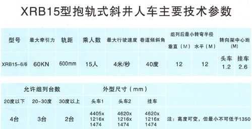 XRB15型抱軌式斜井人車技術參數