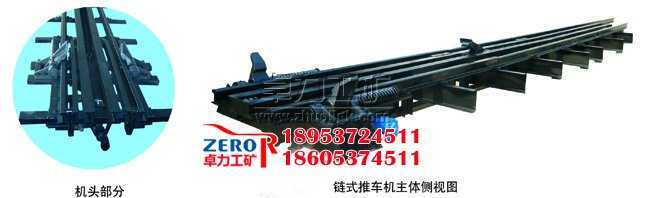 鏈式推車機多安裝于立井井口、平巷和小坡度運輸巷,實現短距離的推拉礦車的功能。