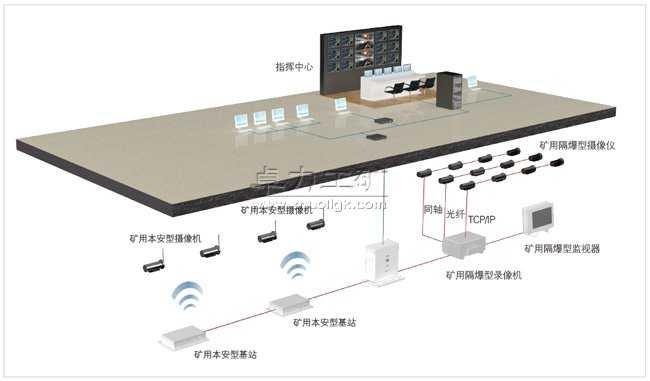 視頻監(jiān)控系統(tǒng)集煤礦移動視頻監(jiān)視裝置ZYSJ127和煤礦視頻監(jiān)視裝置ZSJ127于一身,我公司同時開發(fā)了有線固定監(jiān)視設備與無線移動監(jiān)視設備。視頻監(jiān)控系統(tǒng)由礦用隔爆兼本安型計算機、礦用本安攝像儀、本安型基站(WIFI基站)、移動監(jiān)視終端、礦用隔爆型攝像儀、礦用隔爆型錄像機、礦用隔爆型顯示器、防爆充電器等組成,用來以視頻形式監(jiān)測井下設備的工作狀態(tài),并集合存儲和顯示功能。此系統(tǒng)的投入可以提高工作效率,增強工作設備的安全性和可靠性。最終為設備的“無人值守”提供視頻依據(jù)。視頻系統(tǒng)以綜合管理軟件為核心,實現(xiàn)了基于網(wǎng)絡的點對點、點對多點、多點對多點的遠程實時現(xiàn)場監(jiān)視、遠程遙控攝像機以及錄像、報警處理等,通過兼容有線和無線視頻設備實現(xiàn)視頻系統(tǒng)的數(shù)字化統(tǒng)一管理。