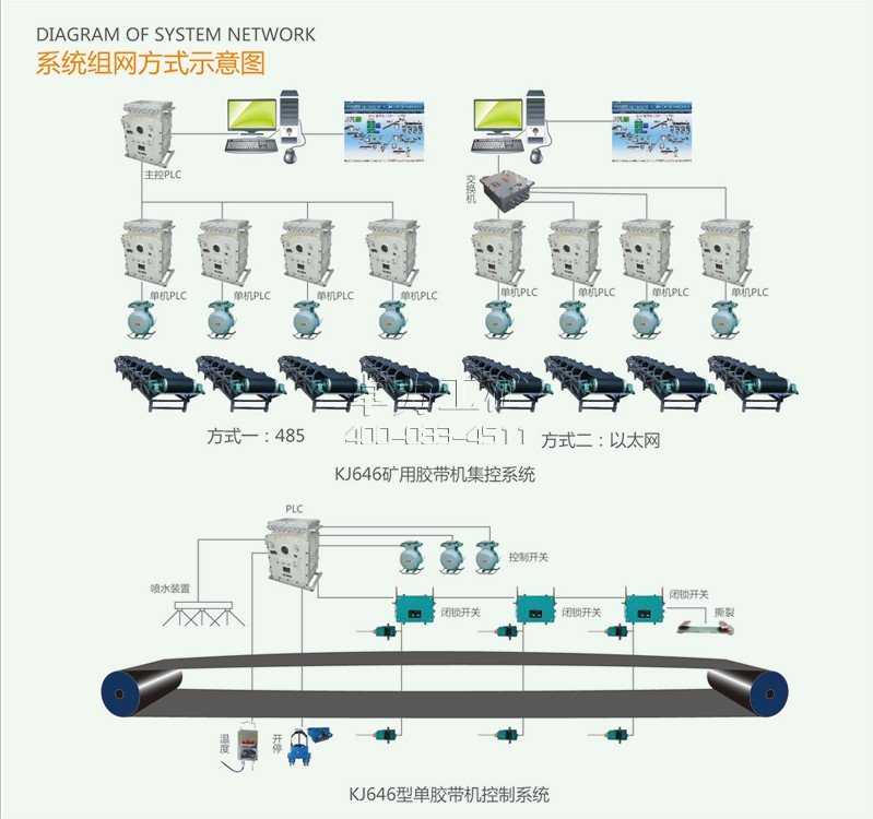 KJ646煤礦用帶式輸送機(jī)電控系統(tǒng)的設(shè)計(jì)是以《煤礦安全規(guī)程》為依據(jù),對(duì)煤礦井下實(shí)際情況進(jìn)行考察之后,綜合各方面的要求設(shè)計(jì)出來的,監(jiān)控設(shè)備的種類、數(shù)量、性能符合《煤礦安全規(guī)程》的有關(guān)規(guī)定,適用各類大中小型煤礦。該系統(tǒng)可采集跑偏、閉鎖、撕裂、溫度、煙霧、速度、煤位等性能參數(shù),以及設(shè)備開停等生產(chǎn)參數(shù),可以控制設(shè)備的起動(dòng)、停止,是煤礦安全生產(chǎn)的必備設(shè)備。