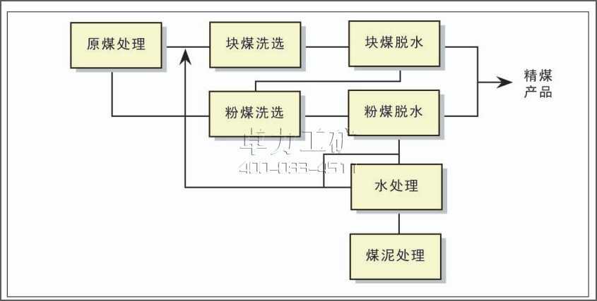 (1)原煤準備:包括原煤的接受、儲存、破碎和篩分。