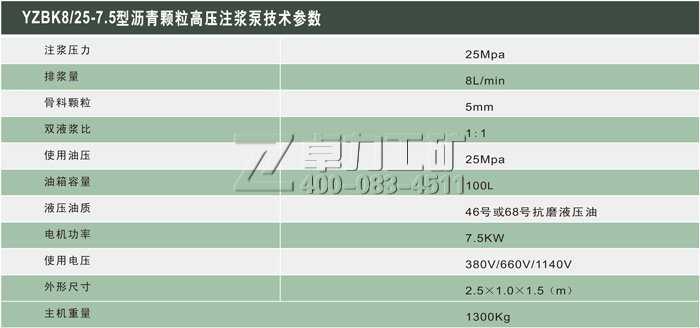 YZBK8/25-7.5型瀝青顆粒高壓注漿泵技術參數表: