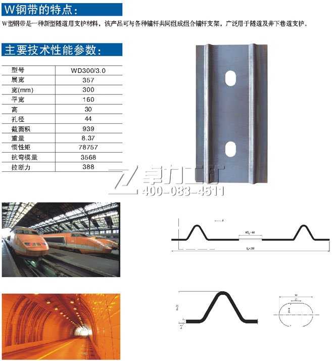 W鋼帶是一種新型礦山支護(hù)材料,W鋼帶(M鋼帶)采用厚度3-5mm寬度180-320mm卷鋼板,經(jīng)過冷彎成W/M型后,在礦用M鋼帶(礦用W鋼帶)中部加工出與錨桿株距相等錨桿孔的鋼帶。